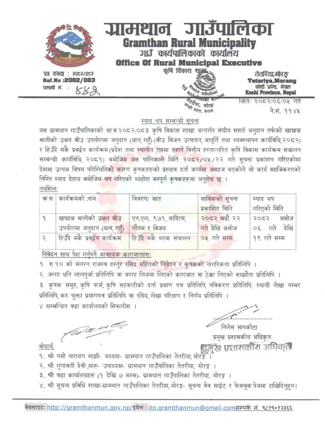 दोस्रो पटक म्याद थप सम्बन्धी सूचना