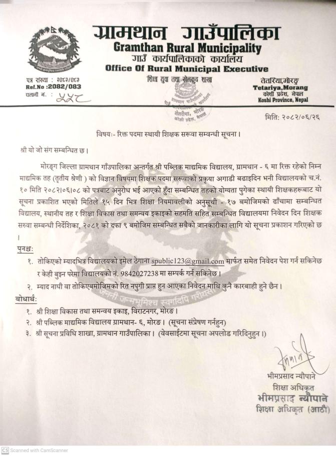रिक्त पदमा स्थायी शिक्षक सरुवा सम्बन्धमा।